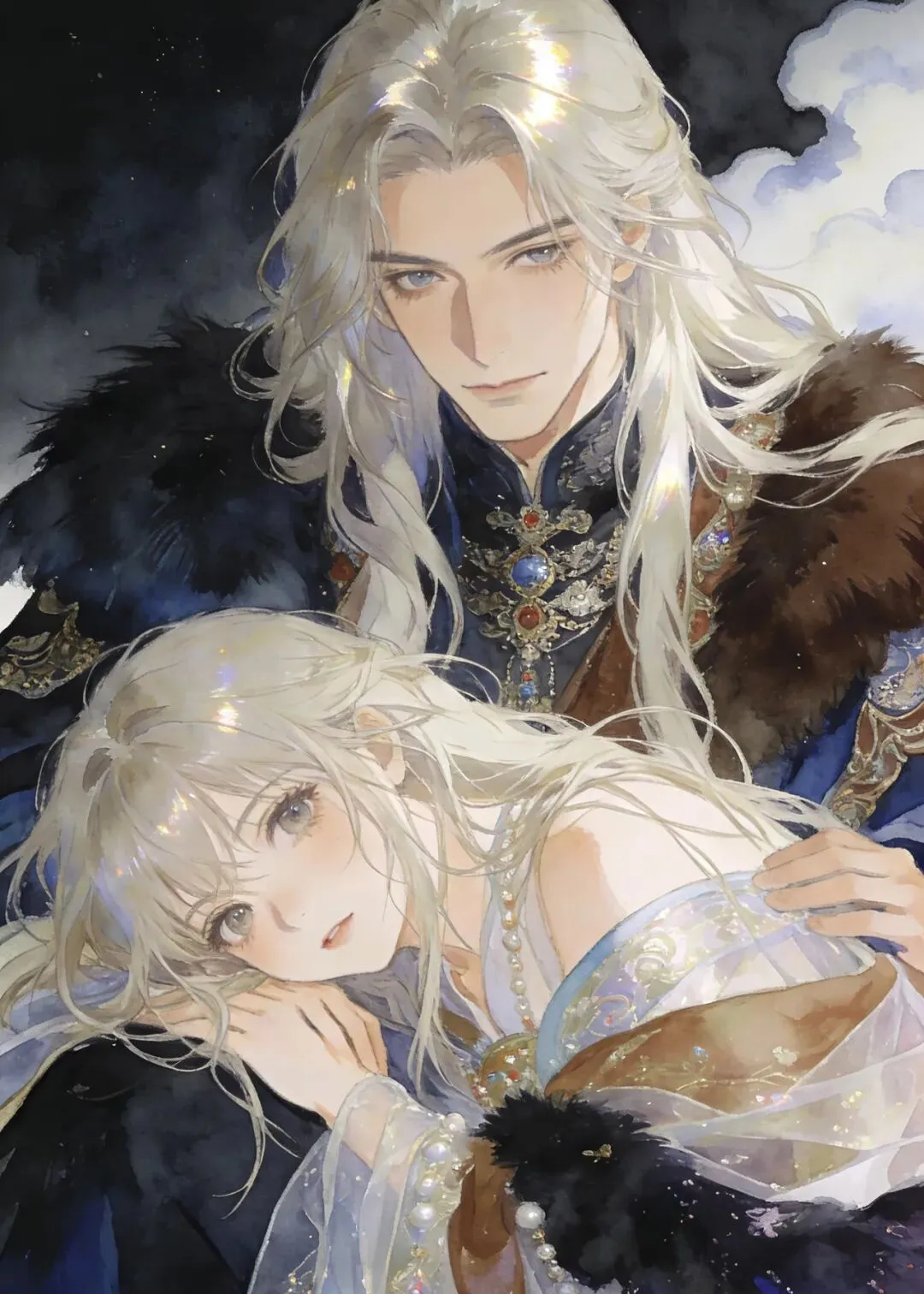 衣褶层叠凝霜饰,发乱银簪黛色匀。