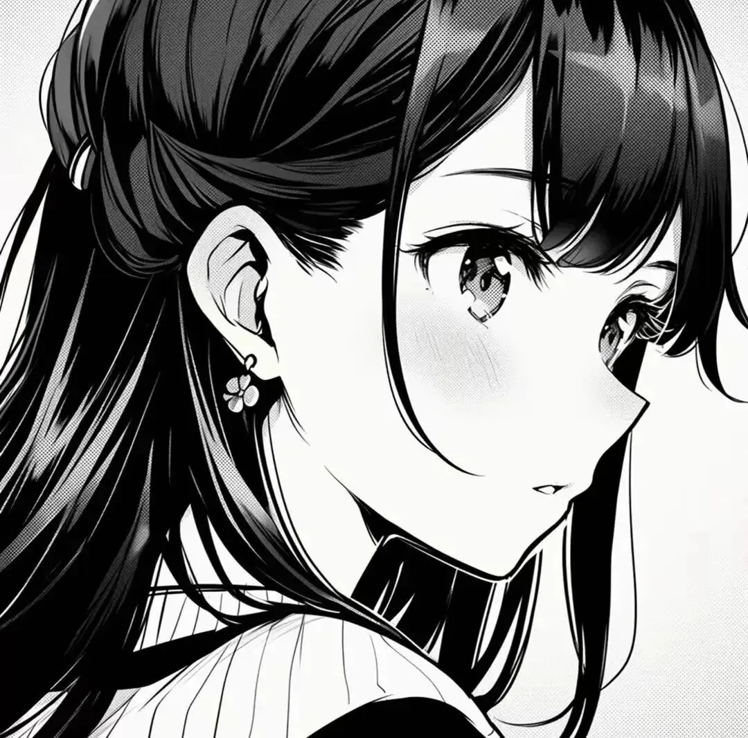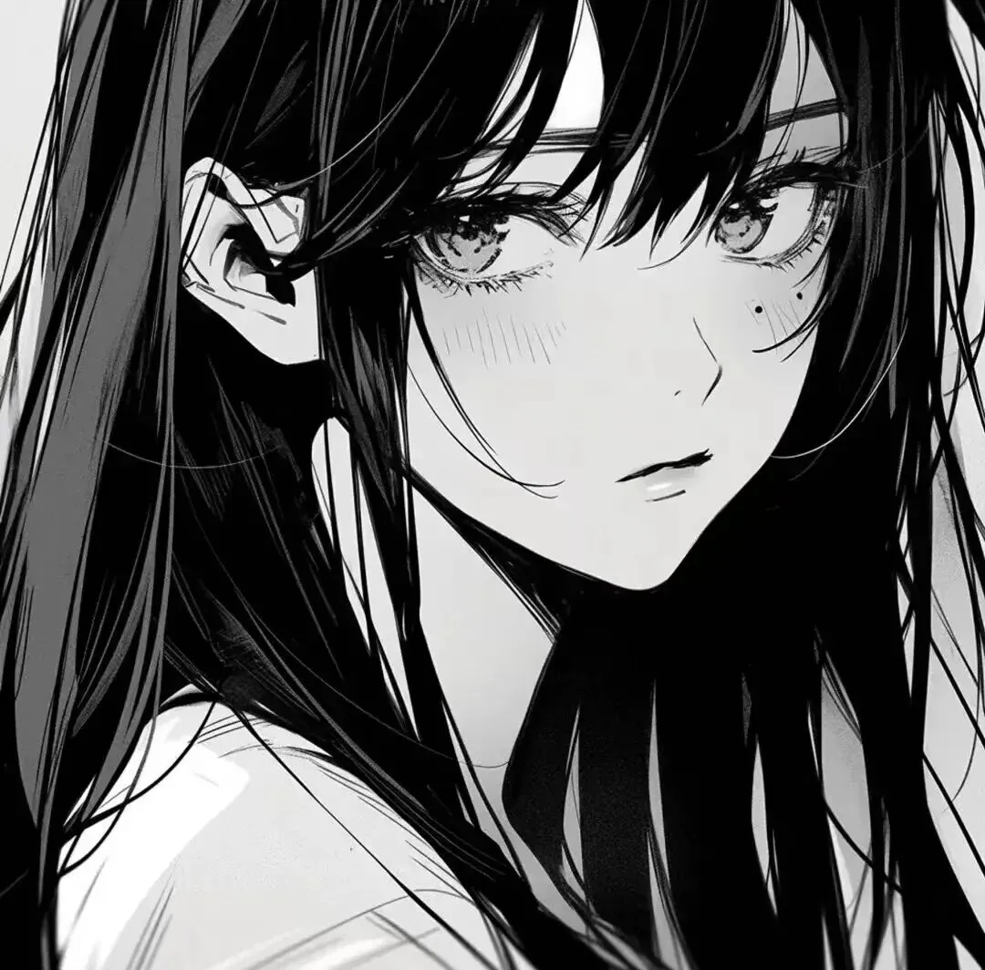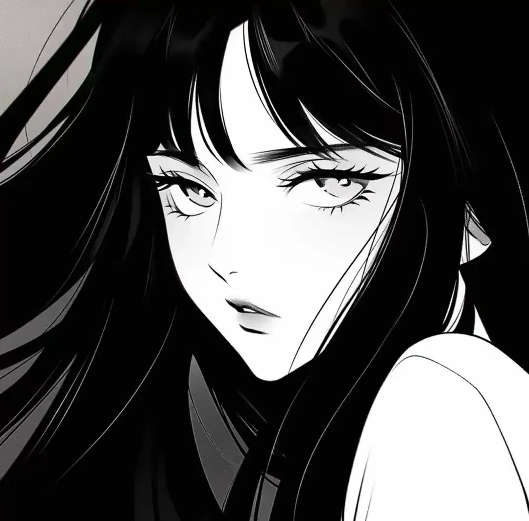 黑白动漫头像长发女