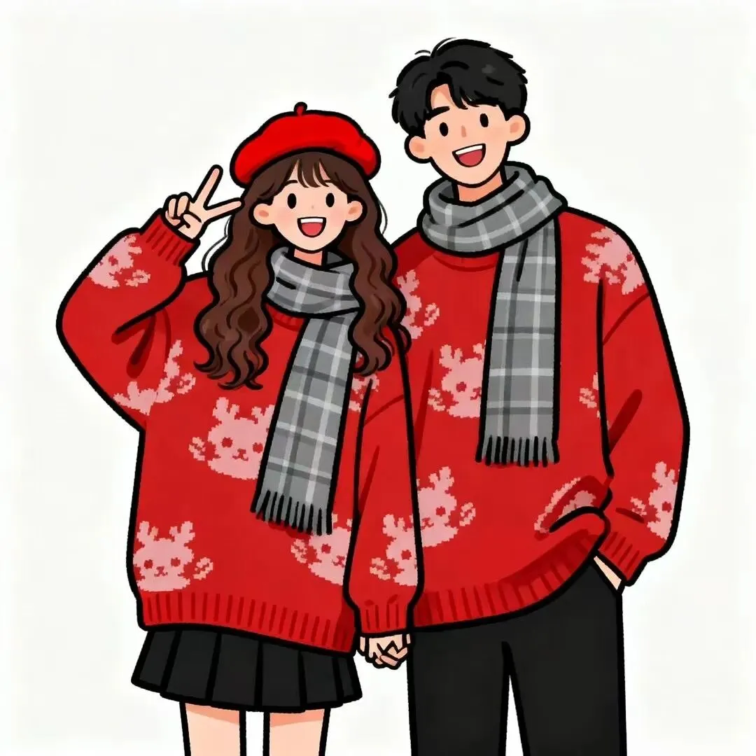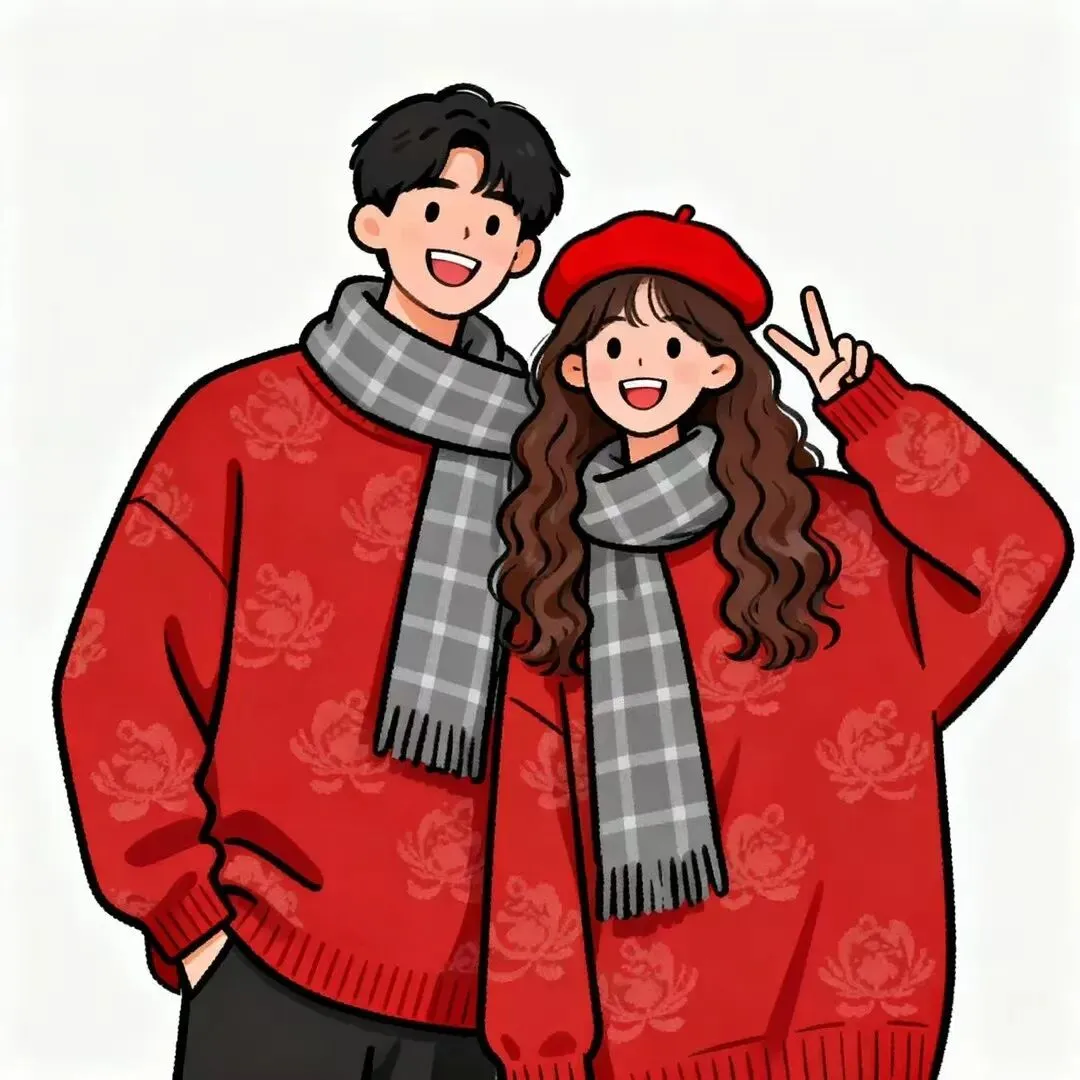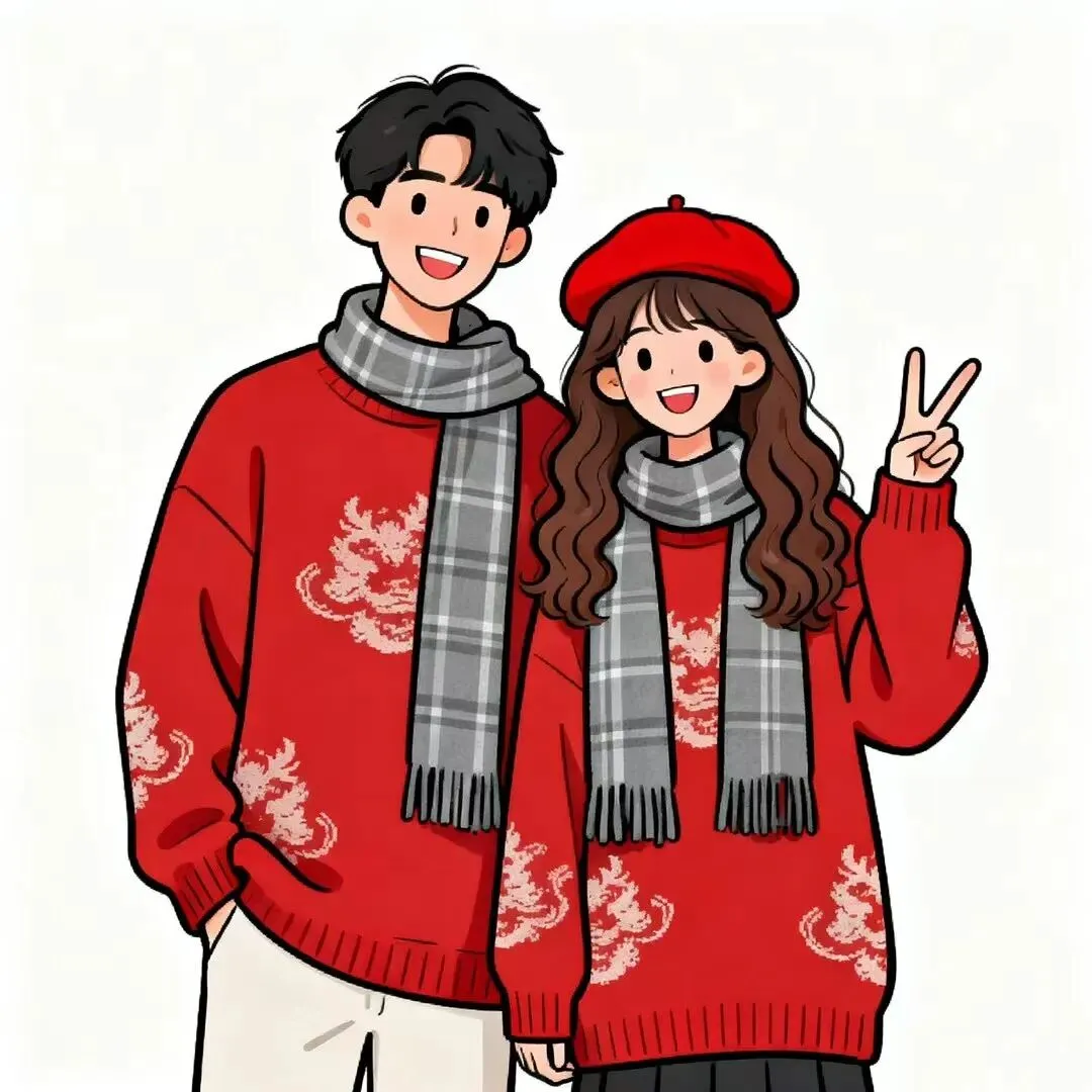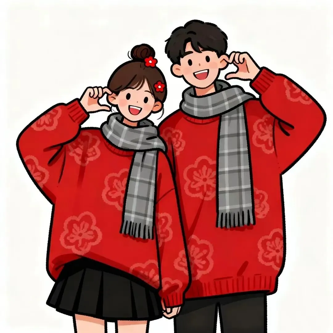 可爱新年情侣漫画头像(直接保存)