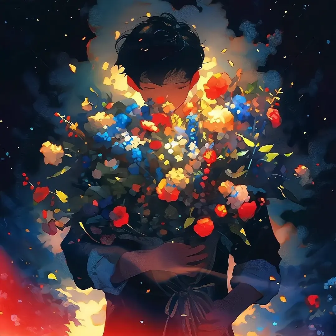 女生头像|招财带花束的温柔气质女头