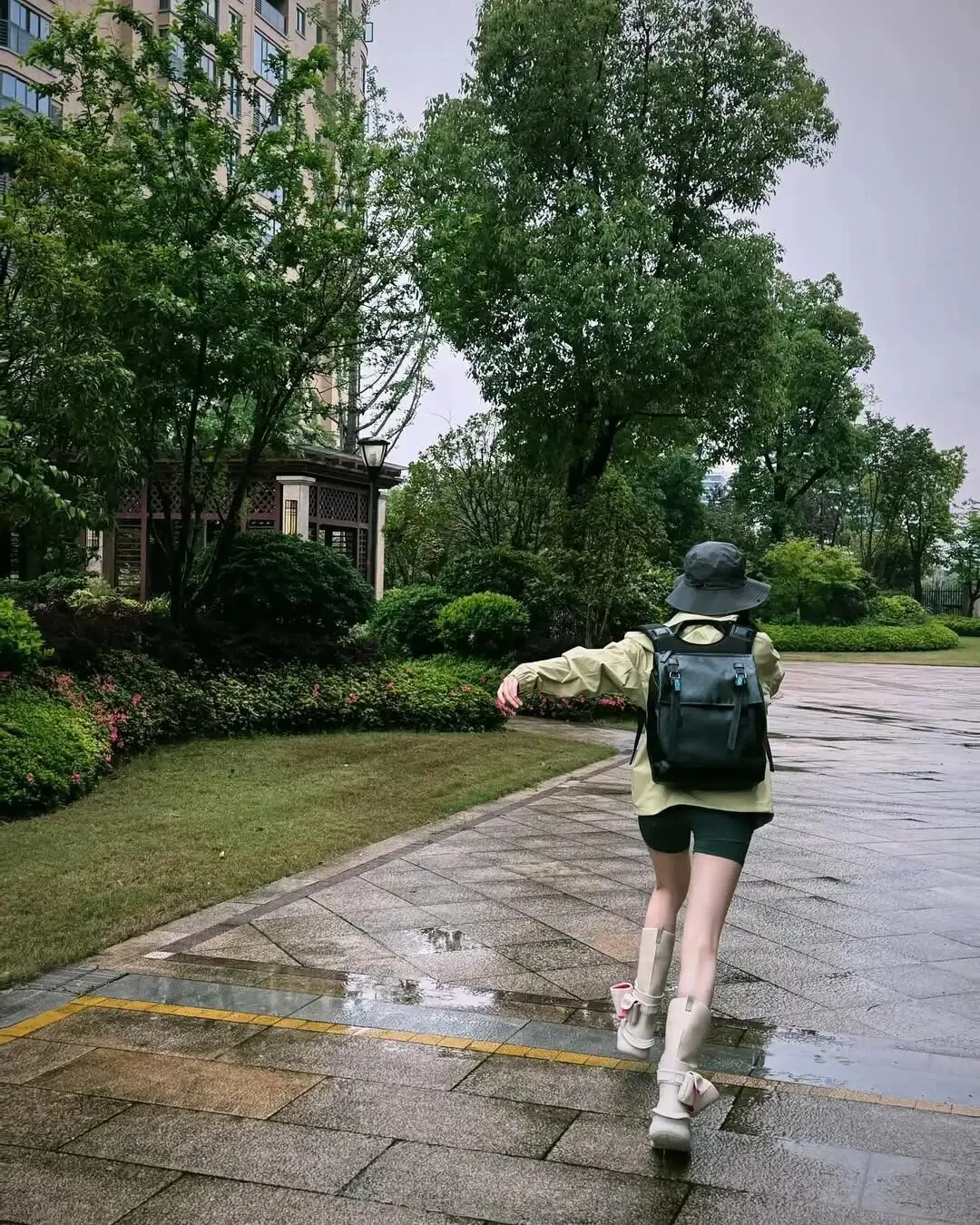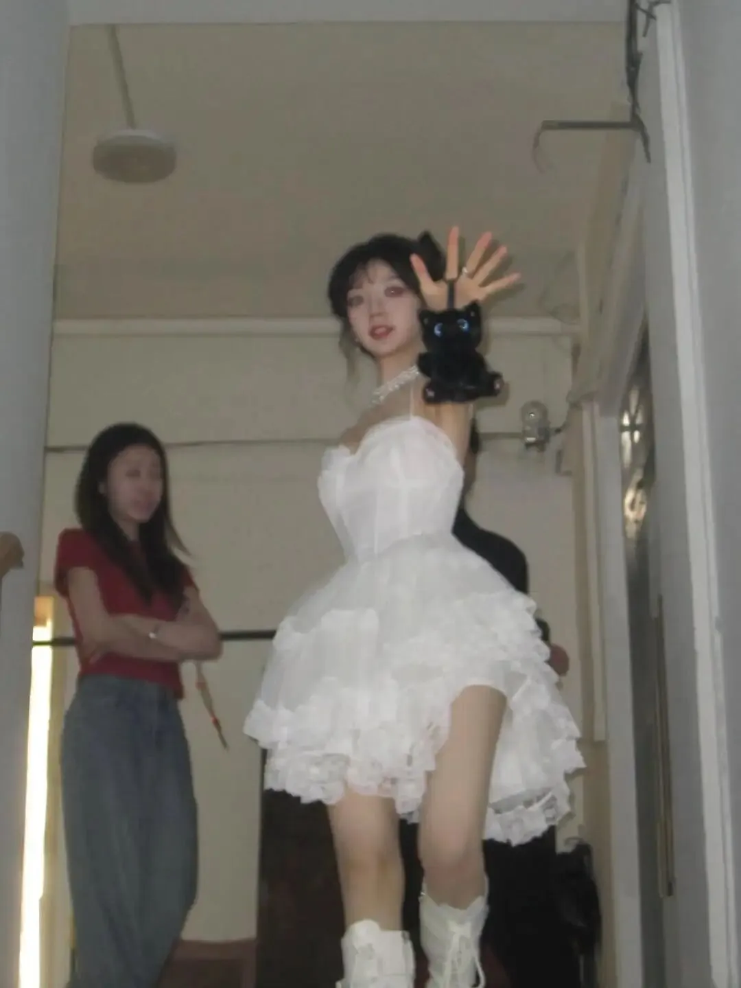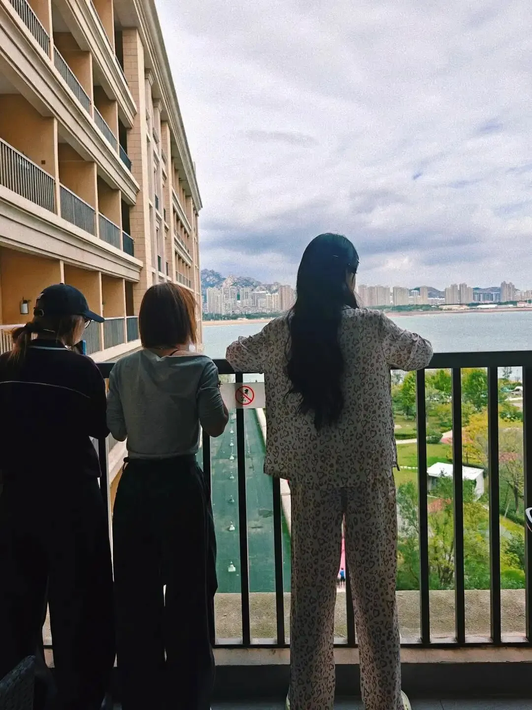 妆画一半儿,仨跑阳台