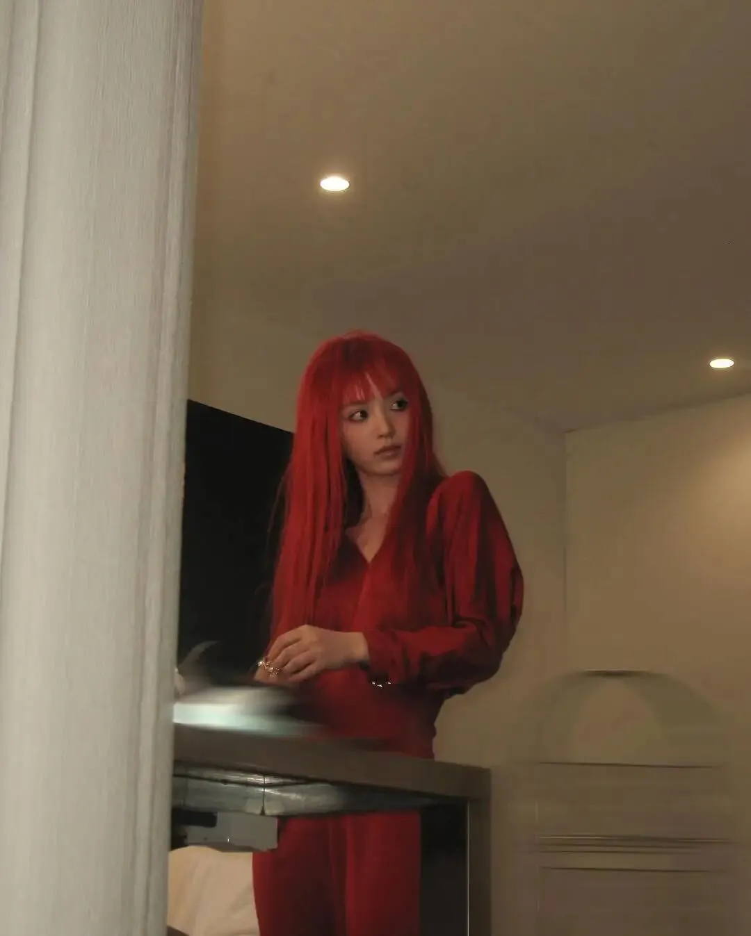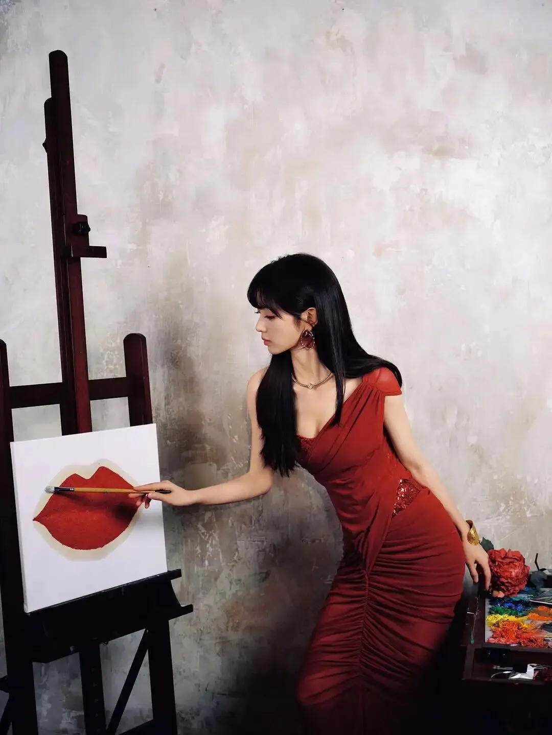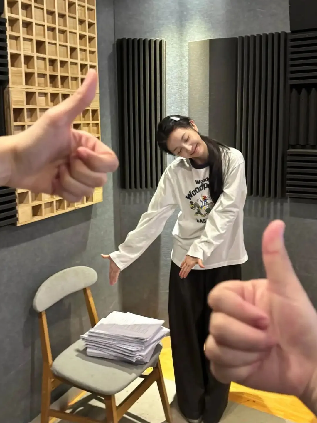 妆画一半儿,仨跑阳台