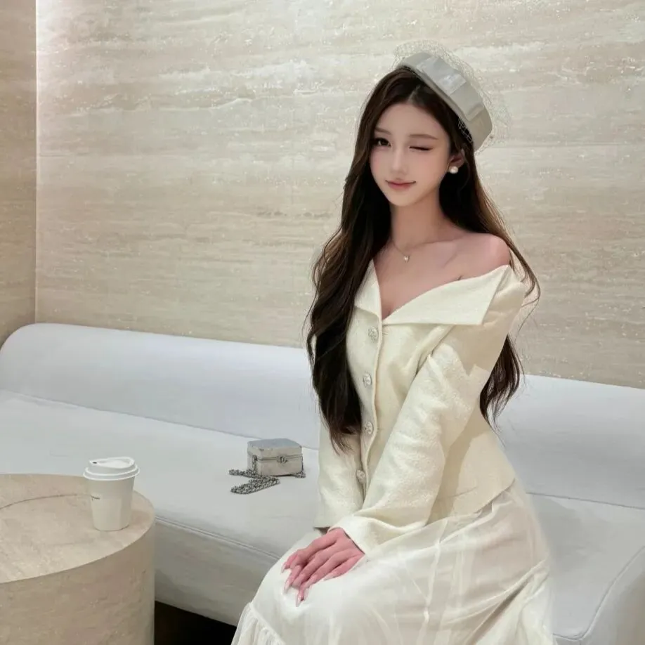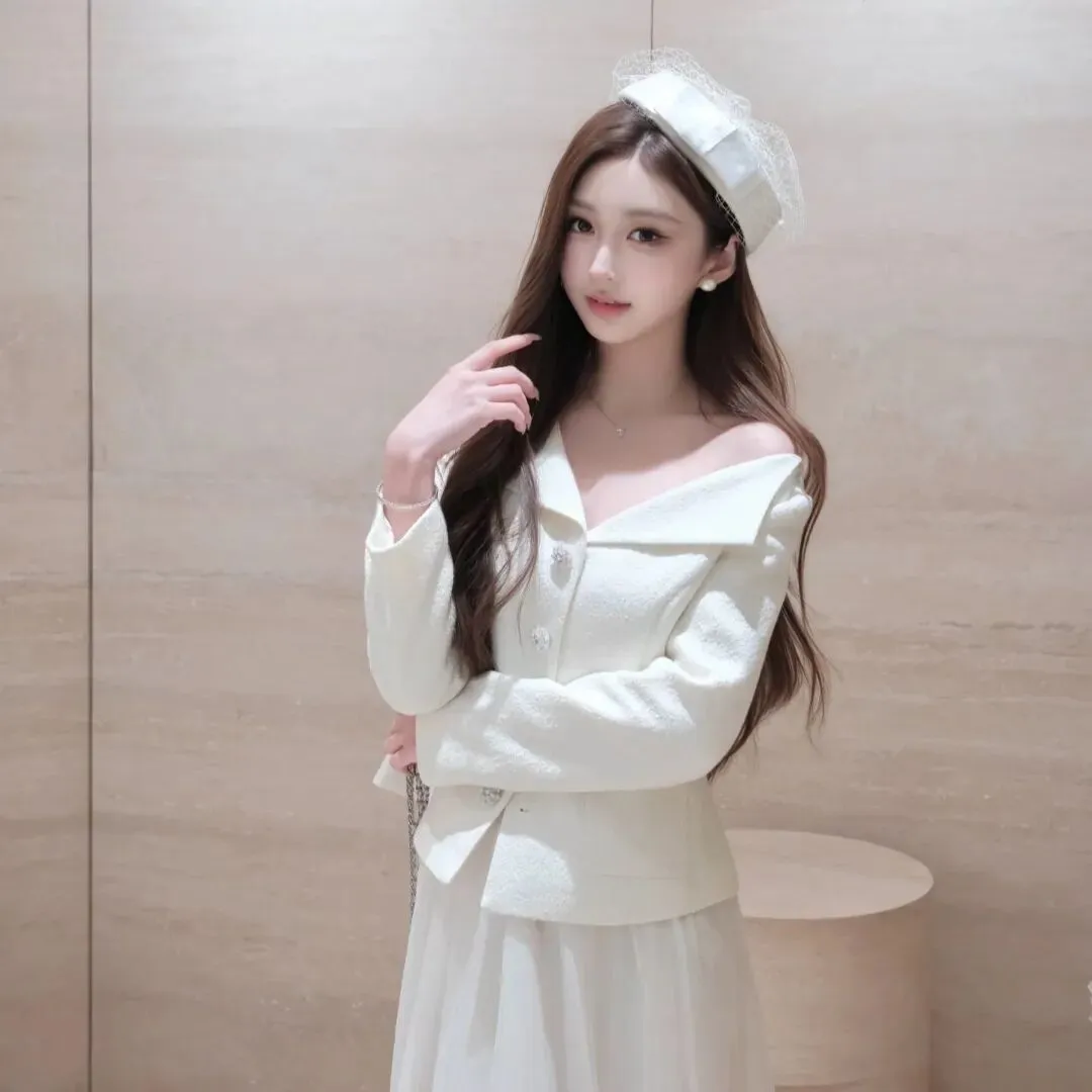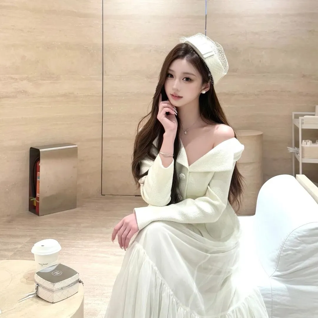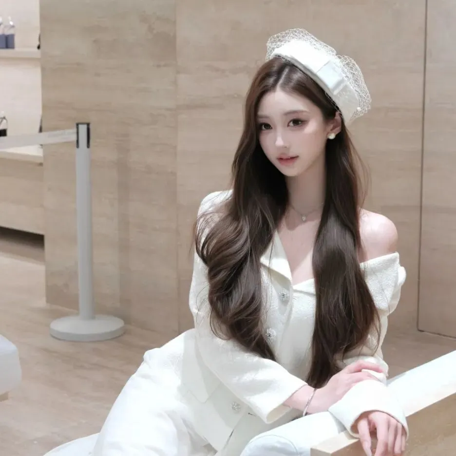 >真女头像|纯白帽+露肩衫