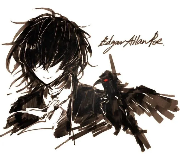 5. 费奥多尔·陀思妥耶夫斯基(文豪野犬):黑发,黑大衣,暗红暗调,嘴角微勾,智性腹黑氛围感;