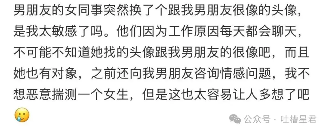 男友和女同事用上情侣头像了…?