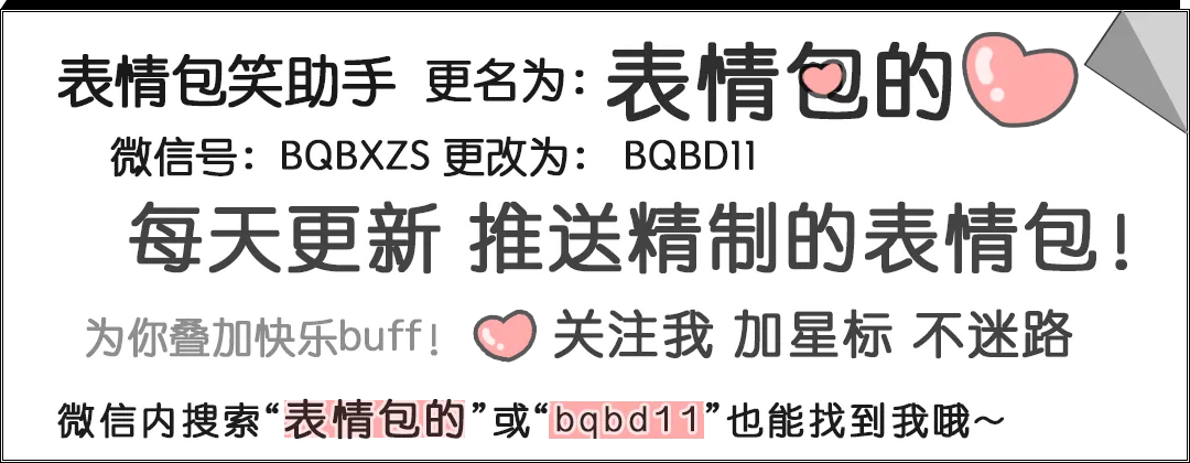 欢迎互助推广!文中扫二维码添加微信联系,留言“合作”。期待与您一起进步!微信改版了,推送的文章会被折叠,推送的时候您就容易错过推文。所以动动小手吧关注本号,然后在公众号主页的右上角点击【···】按钮,在弹出的菜单中选择【设为星标】,这样就不容易走丢而错过推文哦!( ´͈ ᵕ `͈ )◞♡如果您想分享自己的表情包、头像、壁纸作品,原创、二创的表情包,欢迎投稿!请于文中扫二维码添加微信联系,留言“投稿”,注明作者署名。如果选用,我们会在文中注明作者。期待与您合作!💗码稿不易,未经授权禁止搬运盗用!使用我号内容请注明转载出处。需要合作可联系合作互助推广。💗公众号表情包群内每天与公众号同步更新,随时分享更多表情包福利!欢迎本号粉丝饱饱加入!