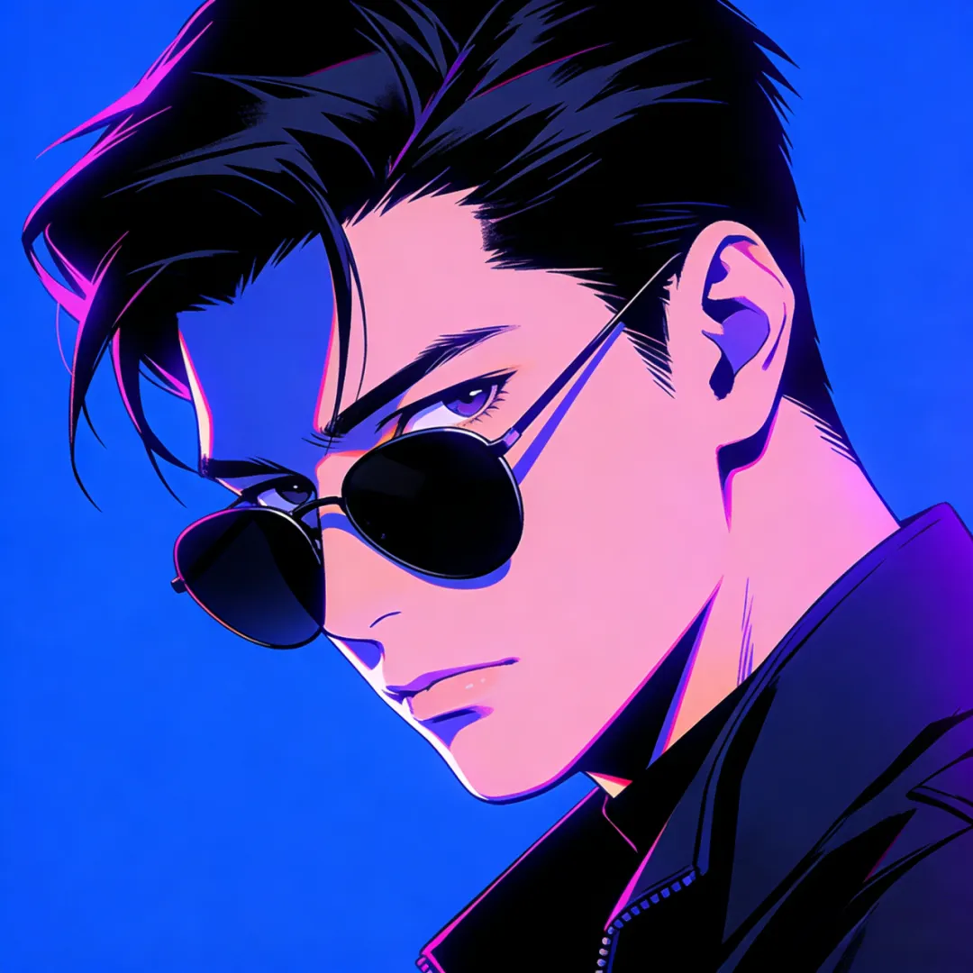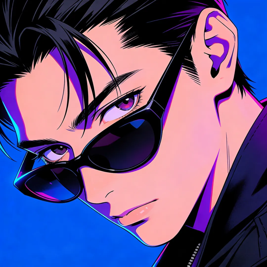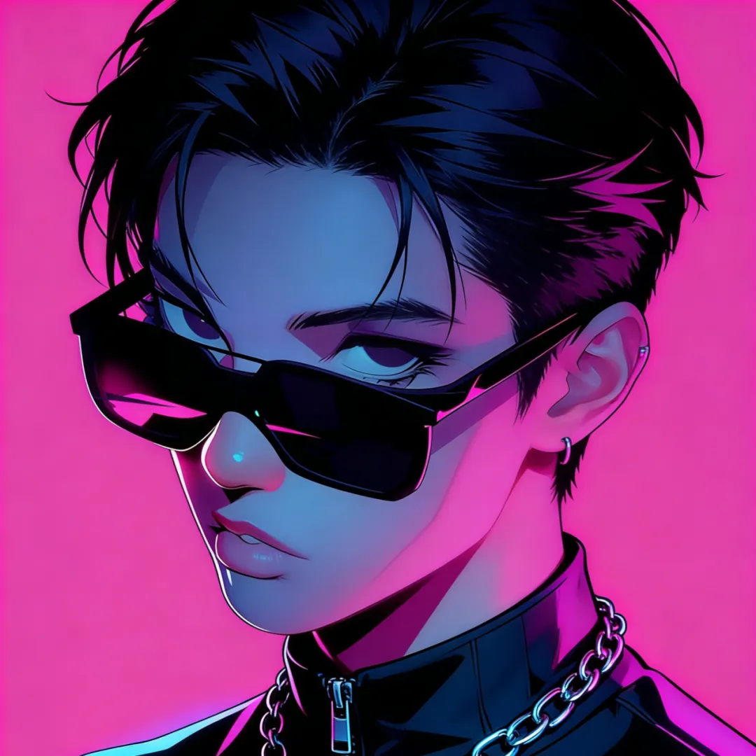 头像 | 荧光色赛博朋克风动漫插画男生头像