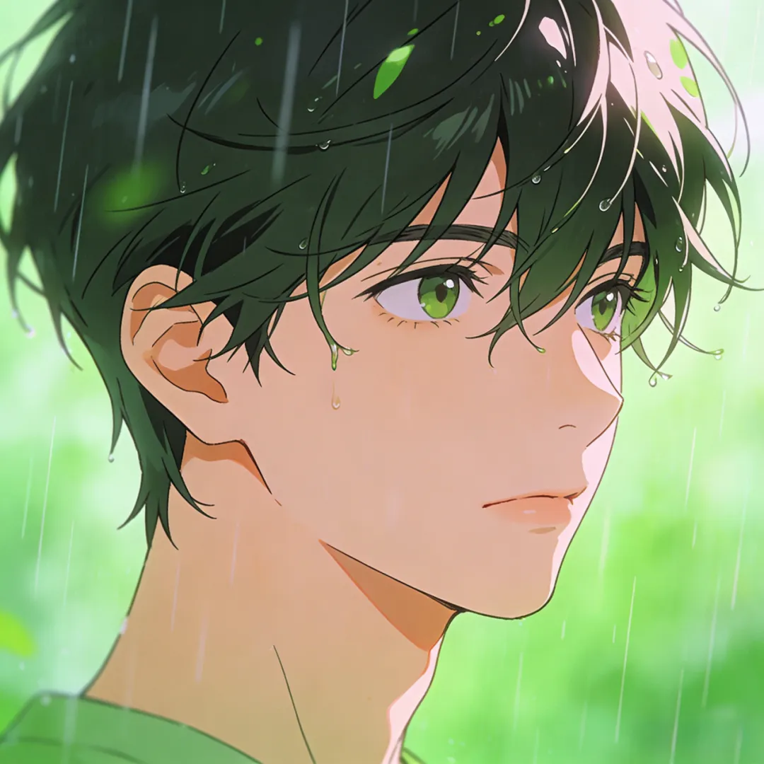 >头像 | 绿色系春雨氛围感漫画男生头像