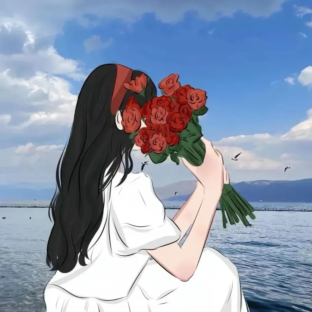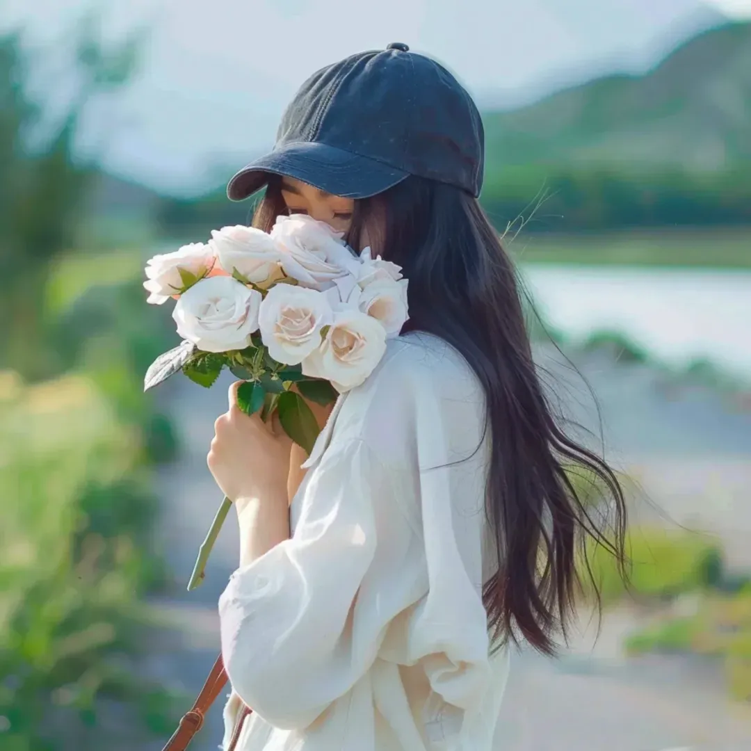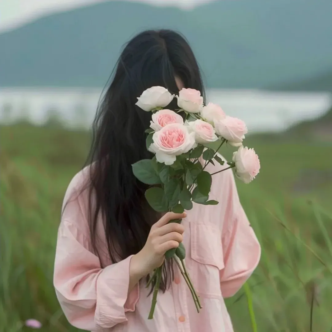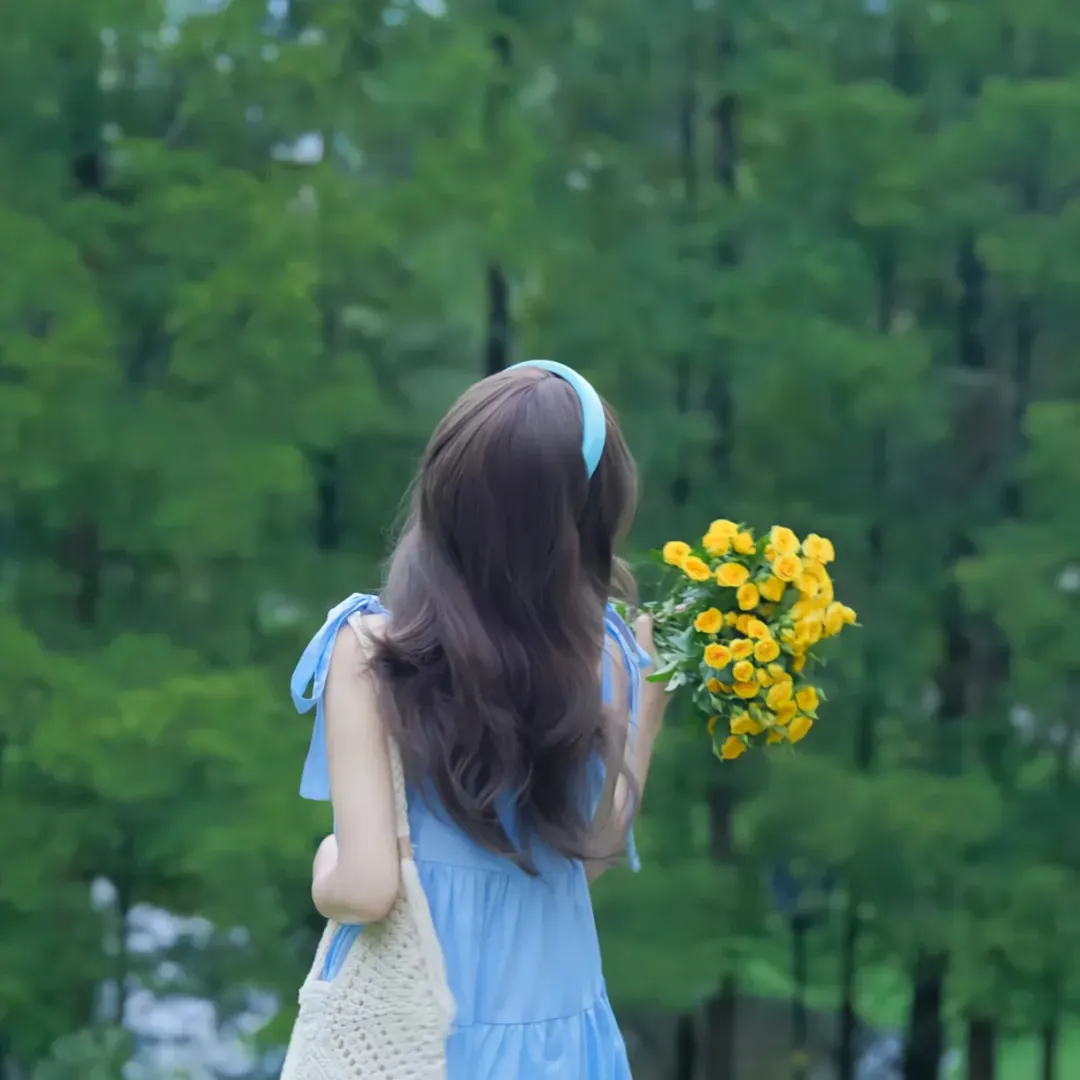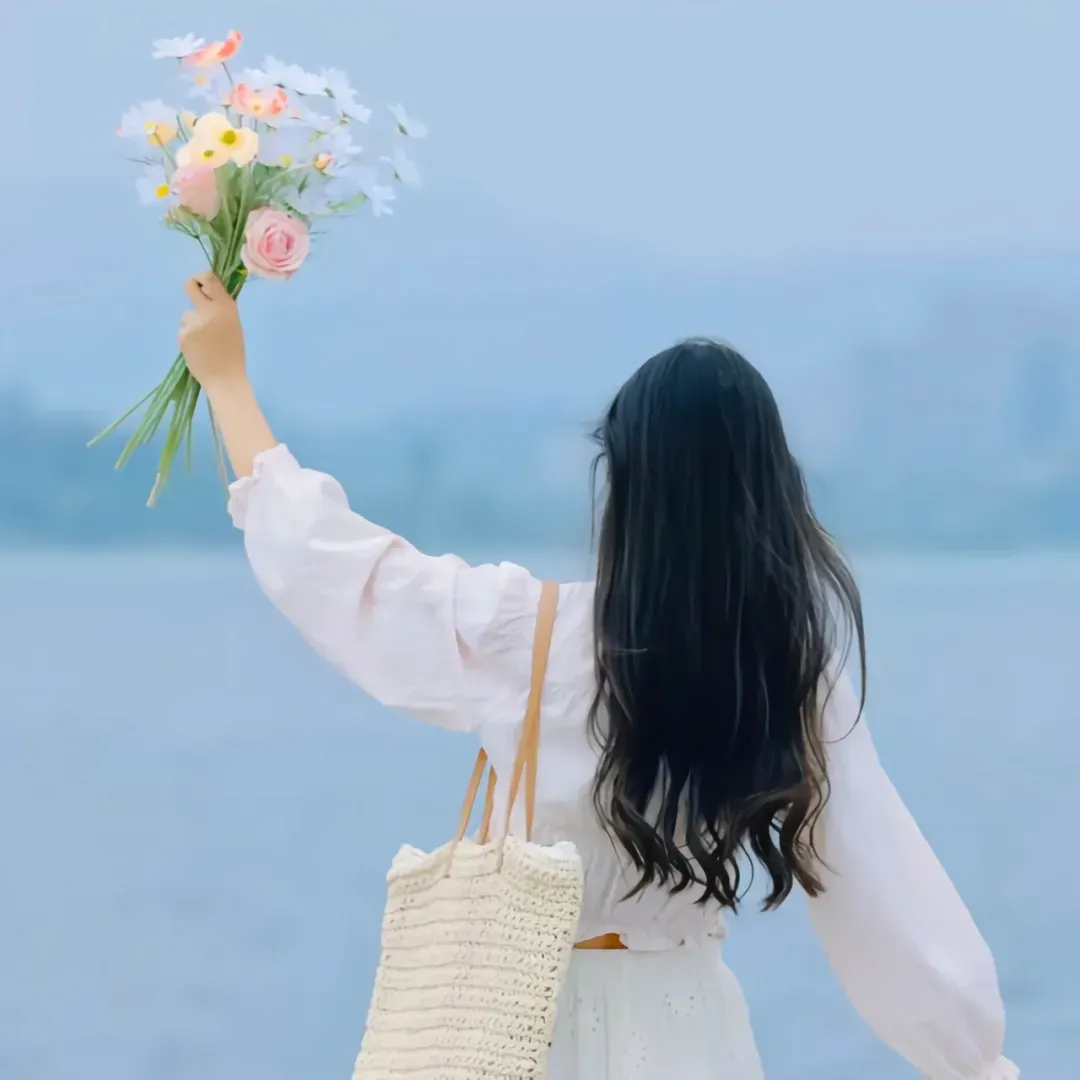 >捧花女头不露脸背影 | 女生头像